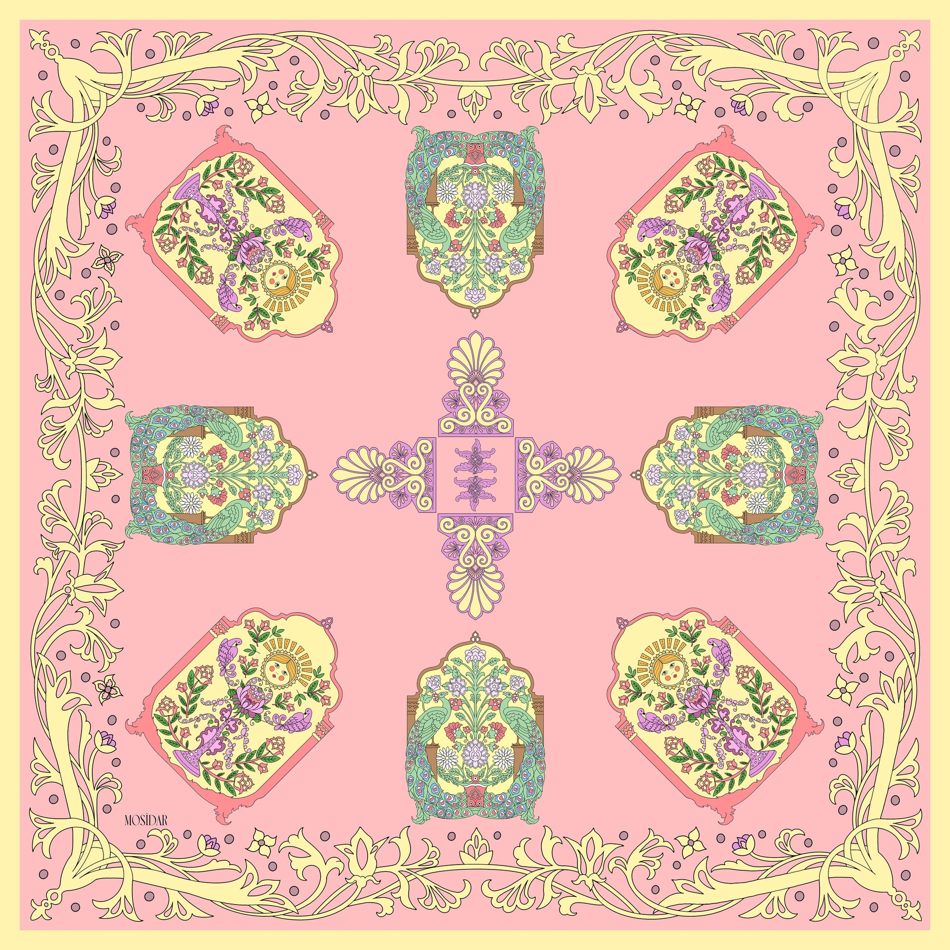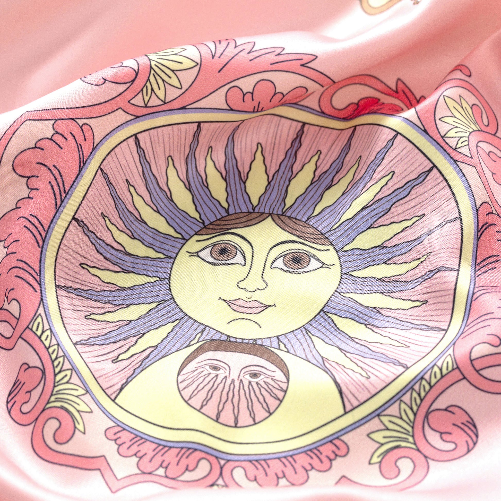 Bathed in warm apricot tones, this 90x90 cm scarf draws on Slavic mythology with intricate siren and floral motifs framed by ornamental borders. Crafted from 100% vegan silk (rayon) and finished with hand-rolled edges, it’s a statement of elegance and storytelling. Gentle hand wash or dry clean recommended.